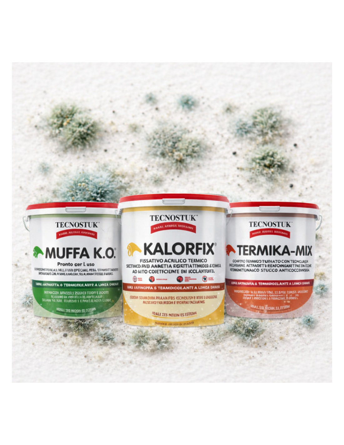 - Tecnologia: Principio attivo antimicotico per Muffa K.O.; polimeri acrilici ad alte prestazioni per Kalorfix; microsfere termoisolanti minerali per Termika-Mix.