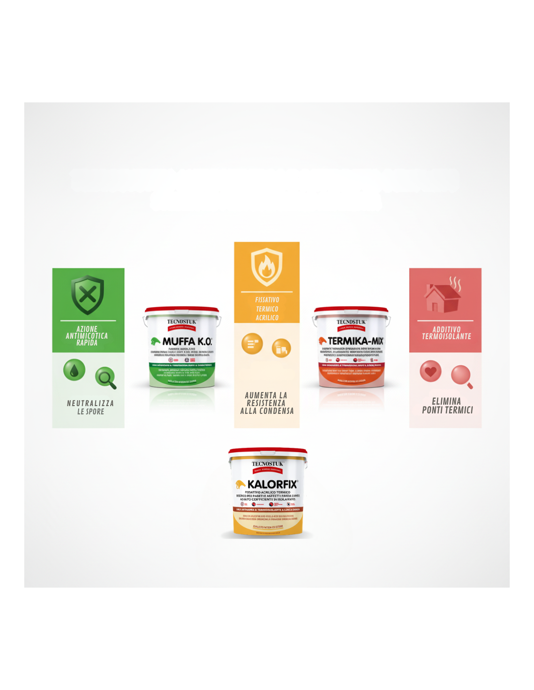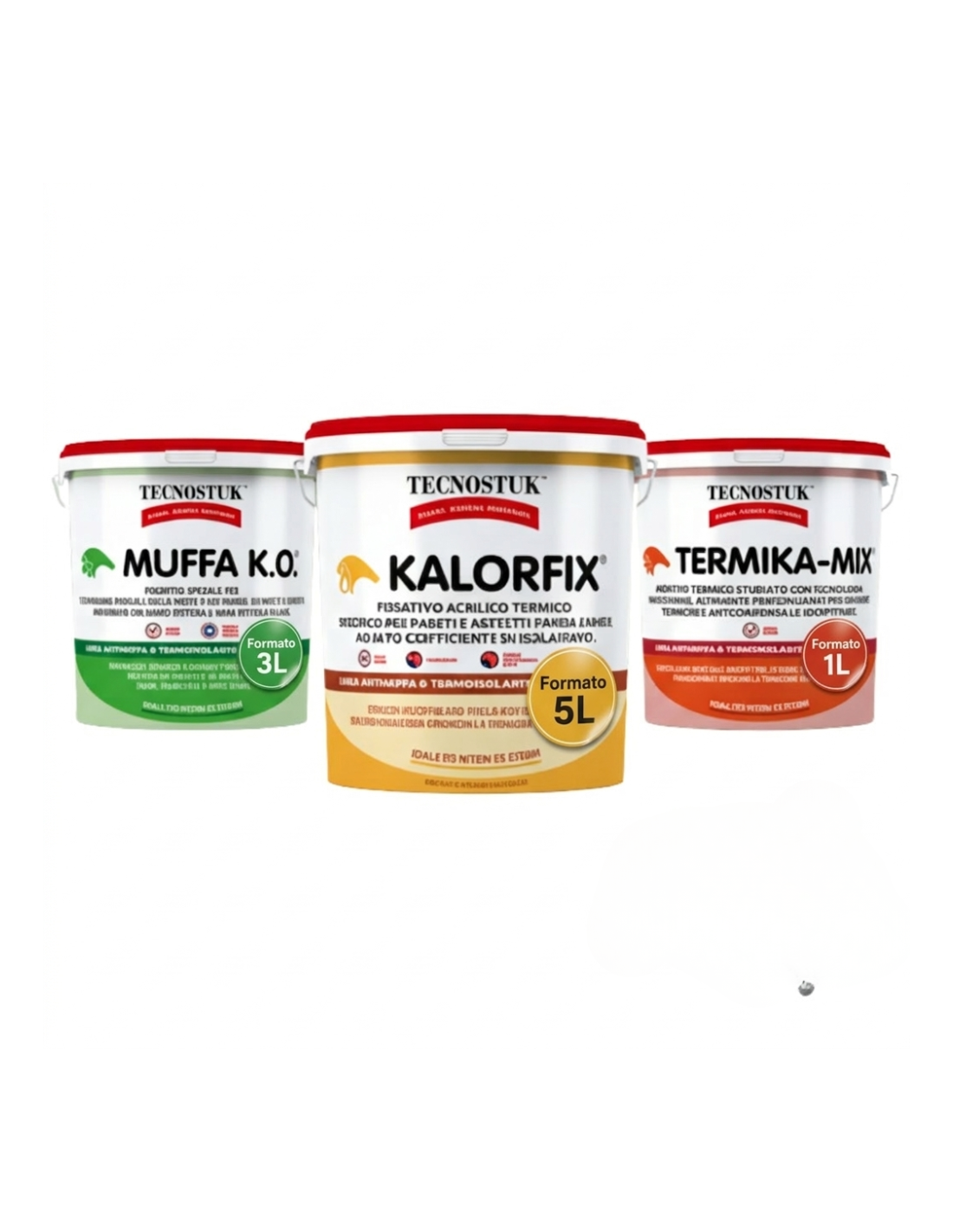 - Tecnologia: Principio attivo antimicotico per Muffa K.O.; polimeri acrilici ad alte prestazioni per Kalorfix; microsfere termoisolanti minerali per Termika-Mix.