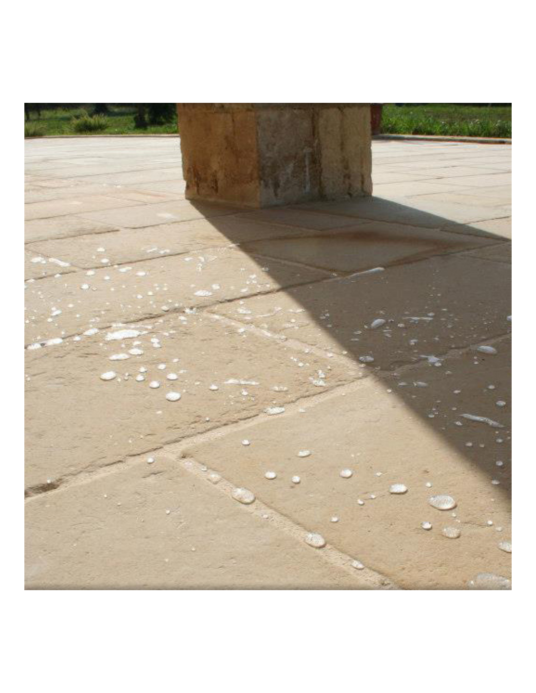 - Applicazione: Utilizzare un pennello morbido in setola naturale o un erogatore a bassa pressione per saturare uniformemente la pavimentazione. Applicare in più mani successive, bagnato su bagnato, evitando ristagni superficiali.