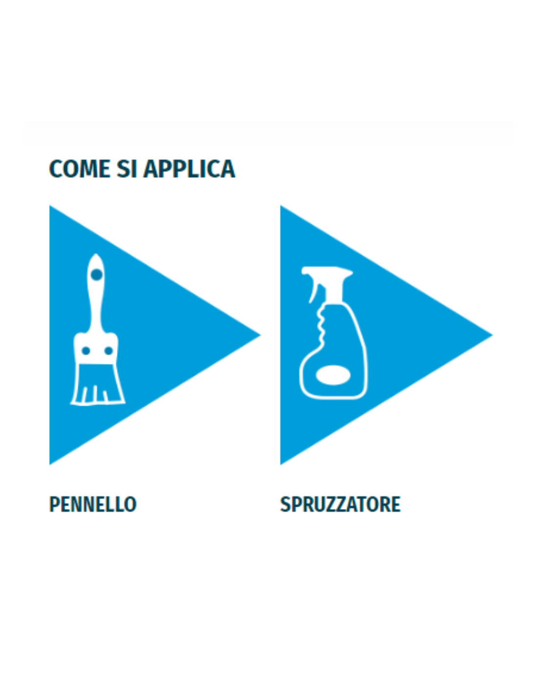 Idrorepel Tono è già pronto all'uso e può essere applicato con un vaporizzatore a bassa pressione o con un pennello morbido in fibre naturali, a seconda delle necessità.