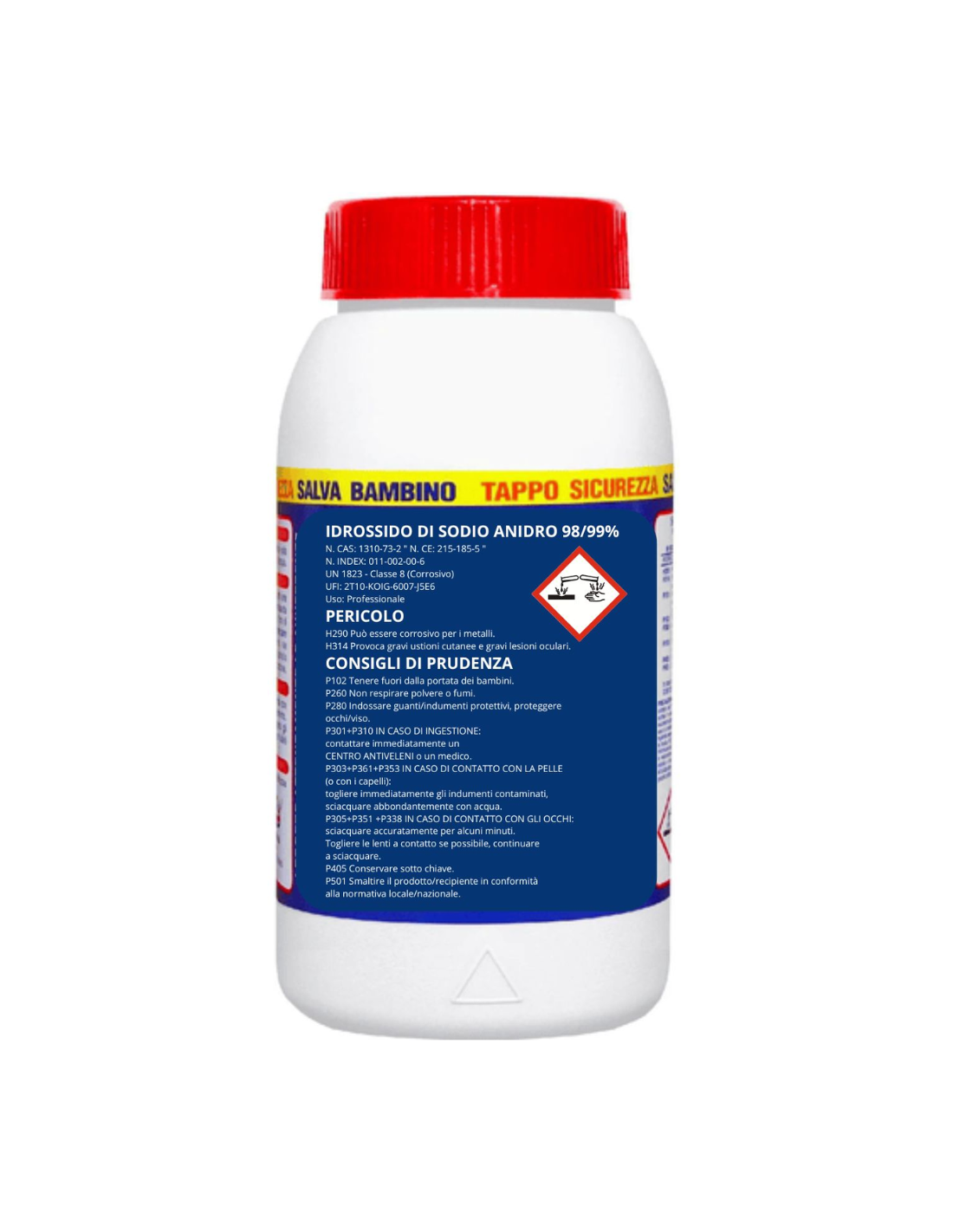 - Prodotto altamente corrosivo: rischio di ustioni cutanee e oculari.