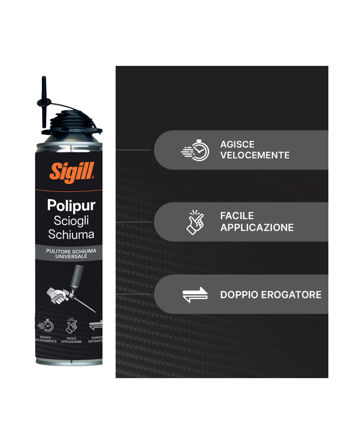 - Facilità di utilizzo: grazie alla formula pronta all’uso non sono richieste particolari competenze tecniche; è sufficiente agitare la bombola, applicare il prodotto sulla zona interessata e rimuovere i residui con un panno.