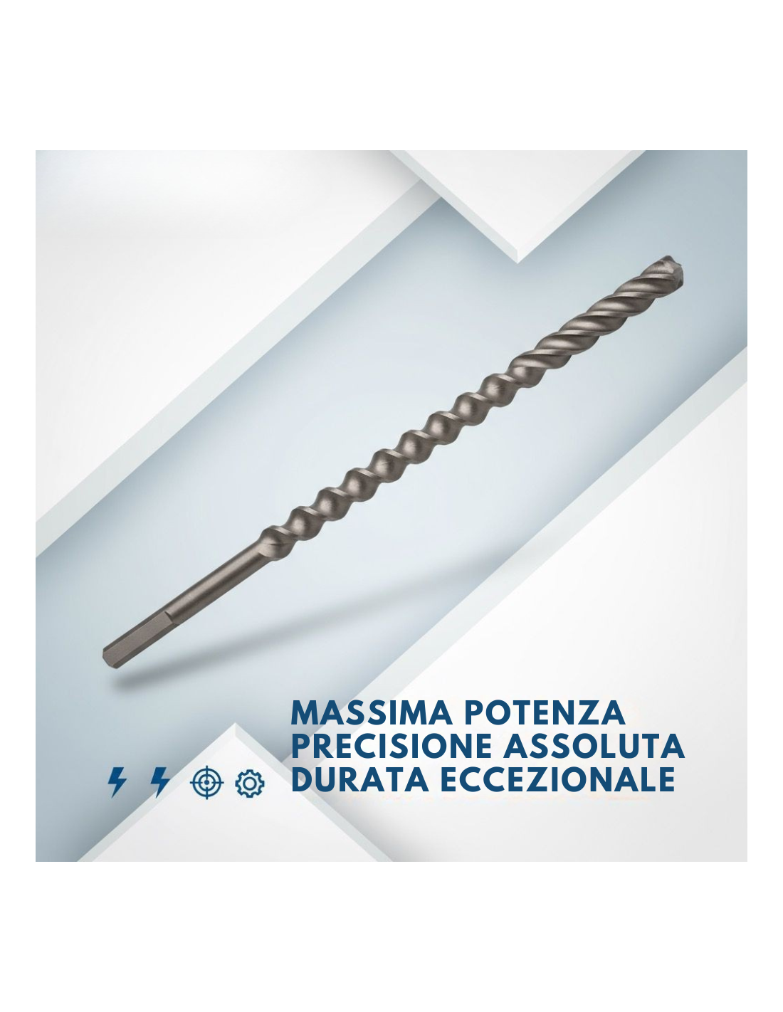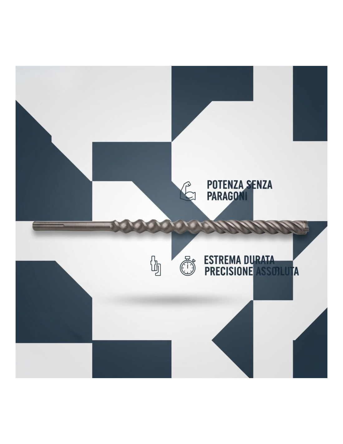 • Velocità di perforazione superiore: grazie al disegno a quattro taglienti in carburo di tungsteno, la punta penetra rapidamente anche nei materiali più compatti come calcestruzzo armato o pietre dure.