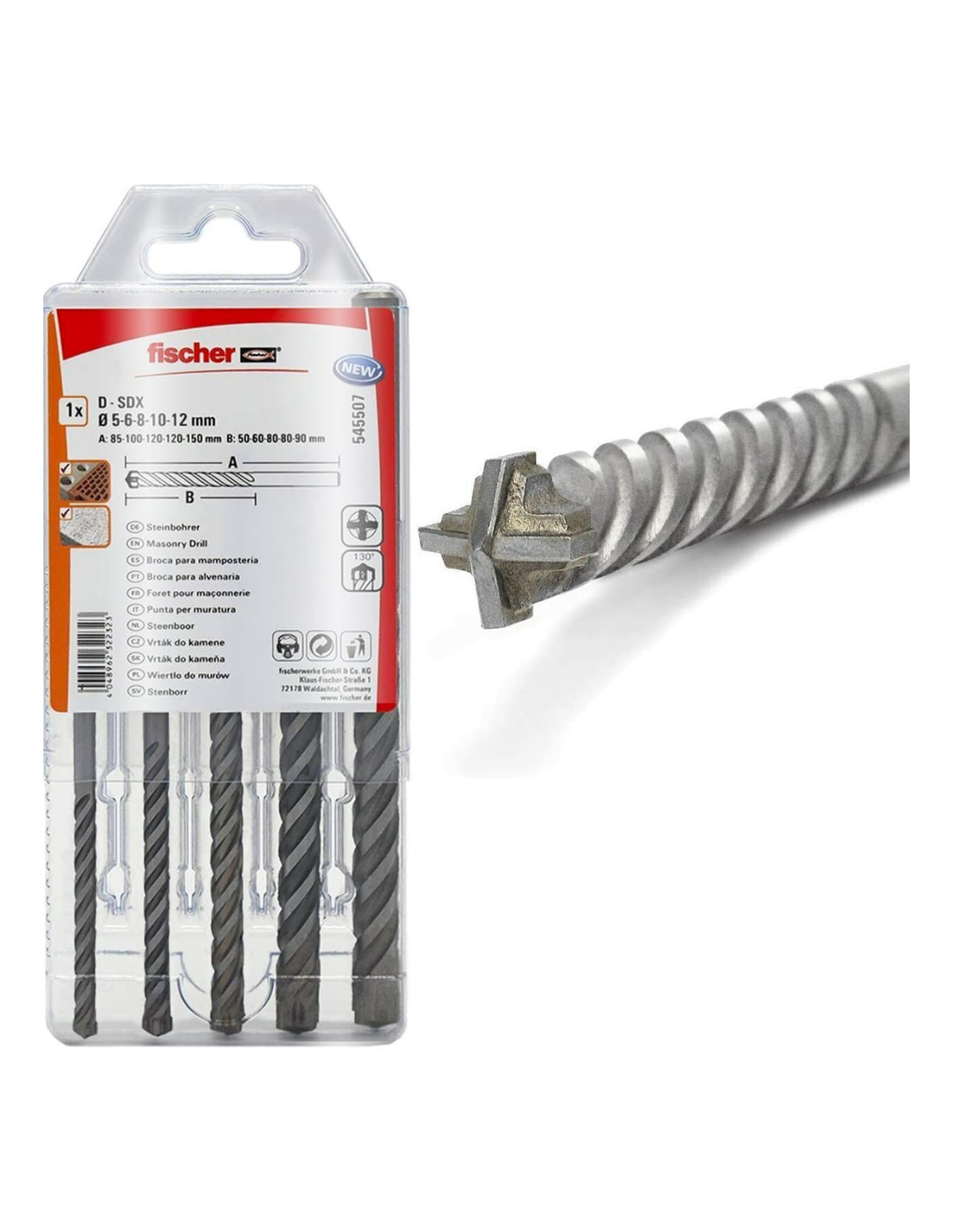 Fischer Kit 5 Punte Trapano D-SDX A Quattro Taglienti 5-12 mm Per Muro