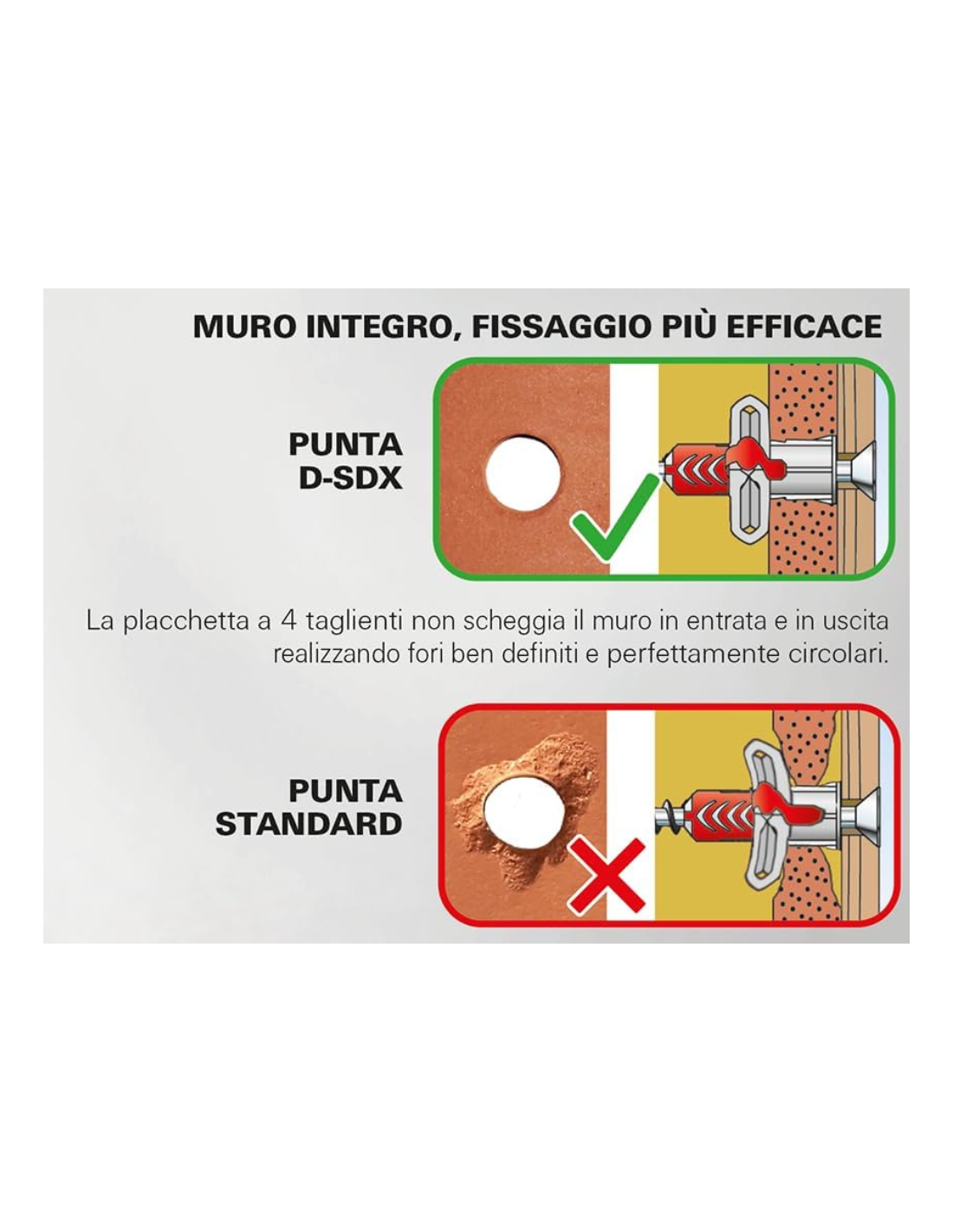 | Utilizzo consigliato | Muri in laterizio, calcestruzzo, cartongesso, arenaria, pietra tenera |