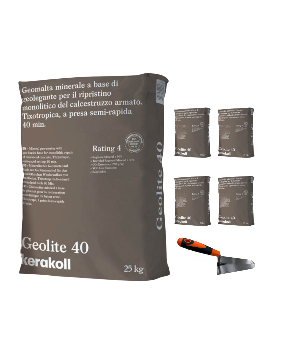 - Confezione costituita da 5 sacchi da 25 kg, ideale per opere strutturali di diverse entità, e una pratica cazzuola che garantisce un’applicazione precisa e uniforme.