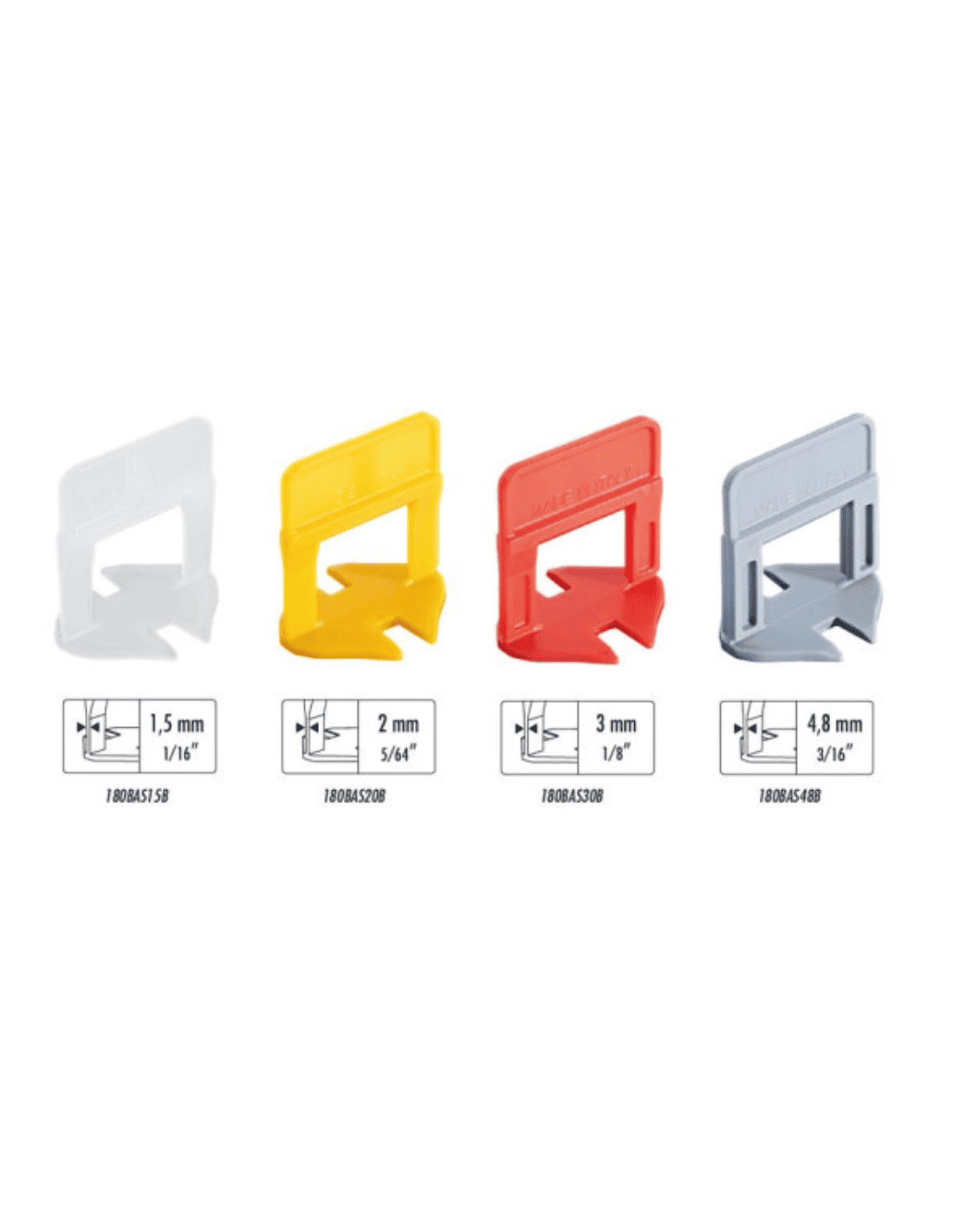 • CARATTERISTICHE: 4,8 mm (3/16") in plastica resistente, con altezza utile di 12 mm; compatibili con piastrelle di spessore compreso tra 3 e 12 mm