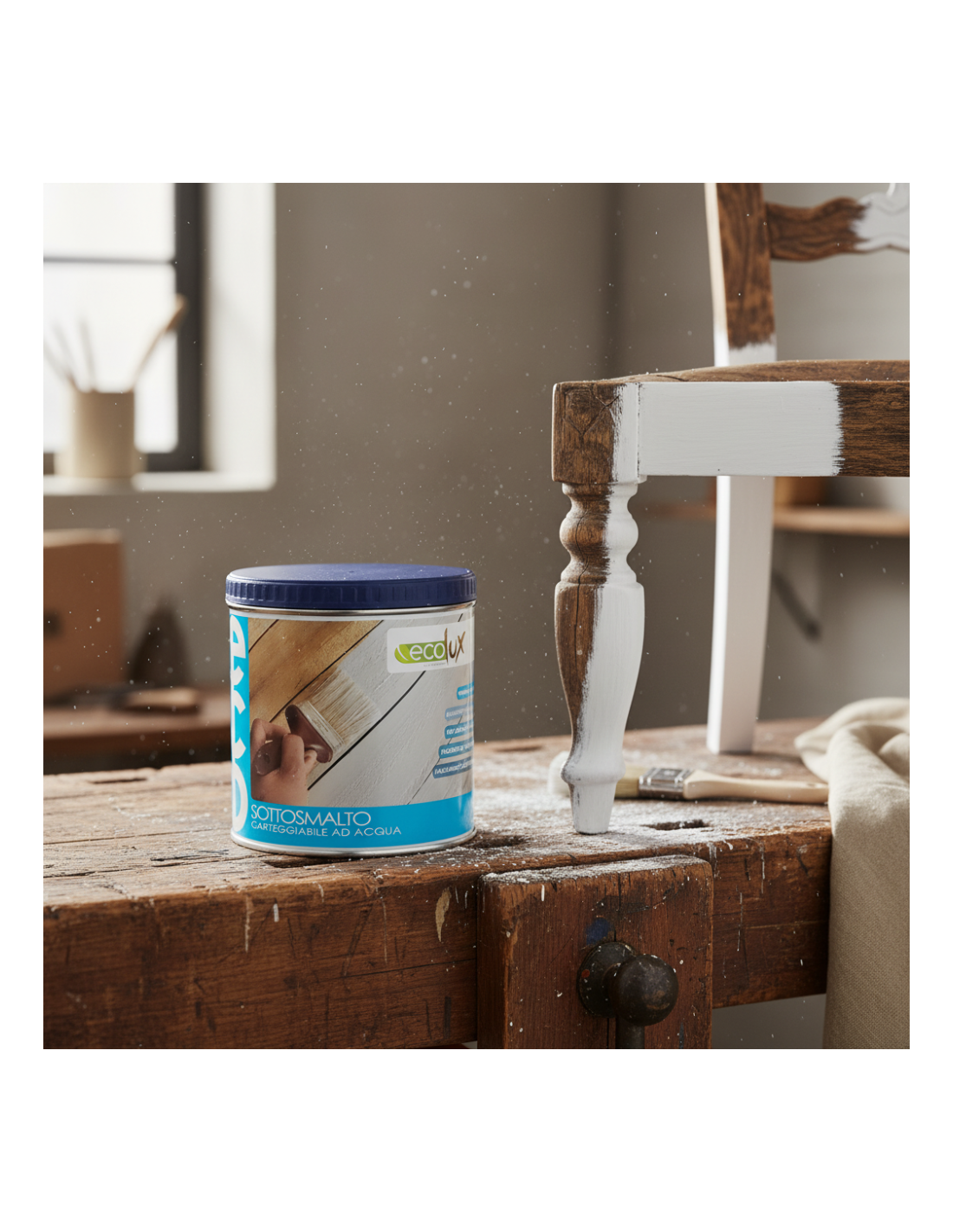Sottosmalto acrilico Ecolux bianco per legno: fondo riempitivo carteggiabile ad alte prestazioni