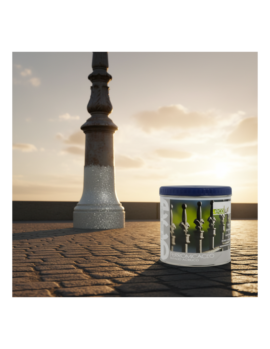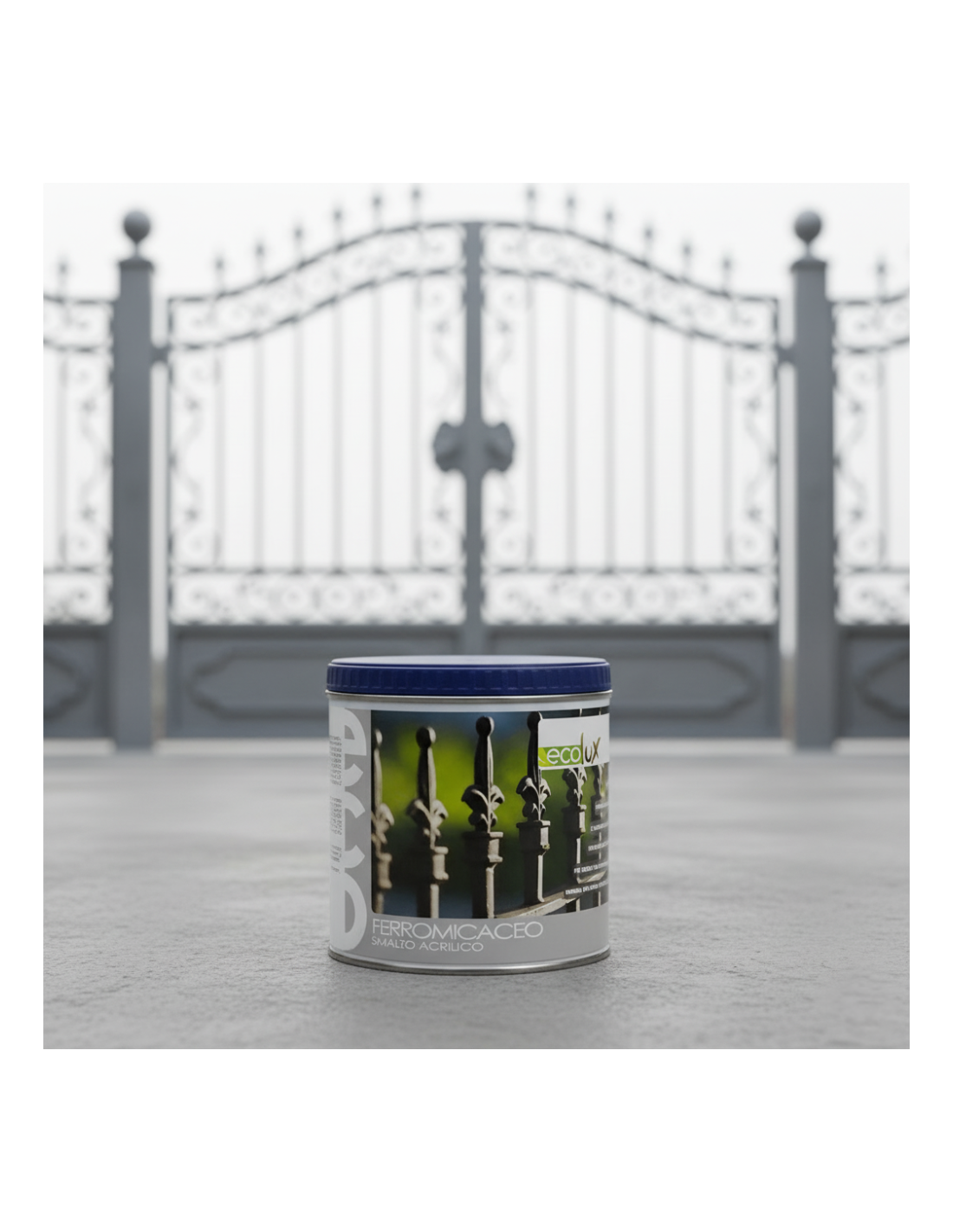 Lo smalto ferromicaceo antichizzante acrilico Ecolux rappresenta una soluzione evoluta per la protezione e la valorizzazione estetica di superfici in ferro e materiali ferrosi. Questa vernice di ultima generazione utilizza una base acrilica idrodiluibile che permette non solo un'applicazione semplice e versatile, ma anche una maggiore sicurezza per l’utilizzatore grazie alla totale assenza di solventi nocivi. Il suo effetto ferromicaceo è ottenuto grazie all’inclusione di speciali pigmenti metallici che creano una texture unica, leggermente ruvida e satinata, capace di simulare la profondità e l’iridescenza del ferro battuto artigianale. Il risultato estetico è raffinato e moderno, con un tocco classico dato dalla finitura antichizzata.