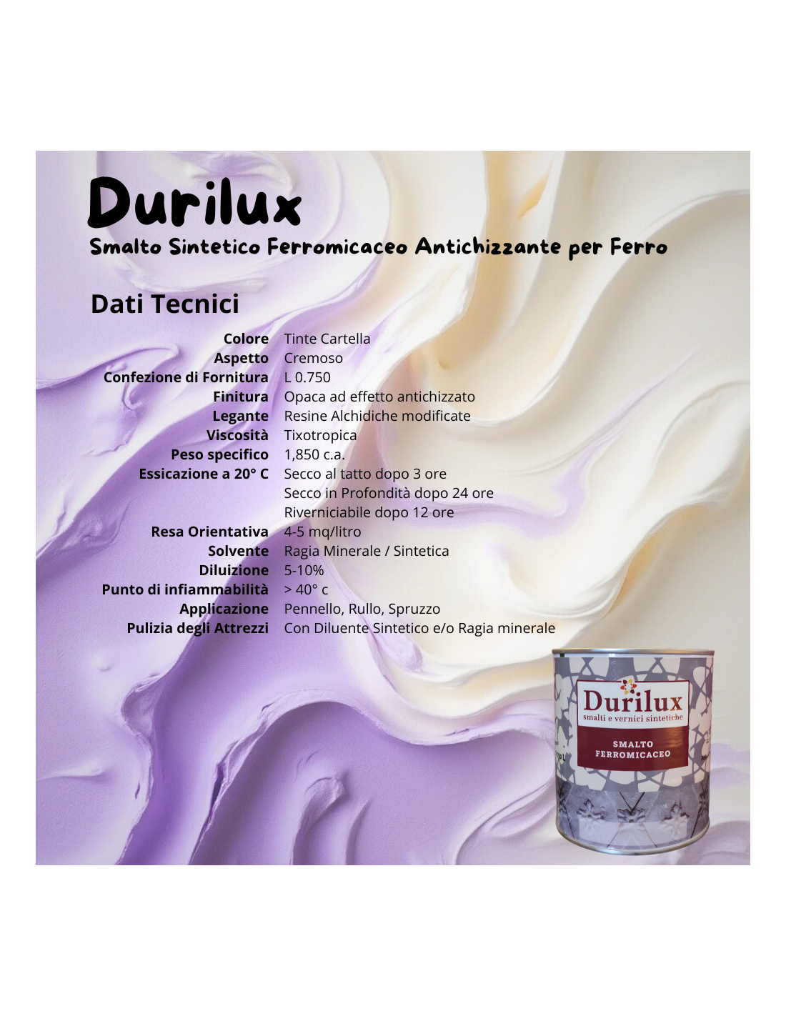 Per le sue caratteristiche e per il particolare aspetto estetico, Durilux Smalto Sintetico Ferromicaceo Antichizzante per ferro: