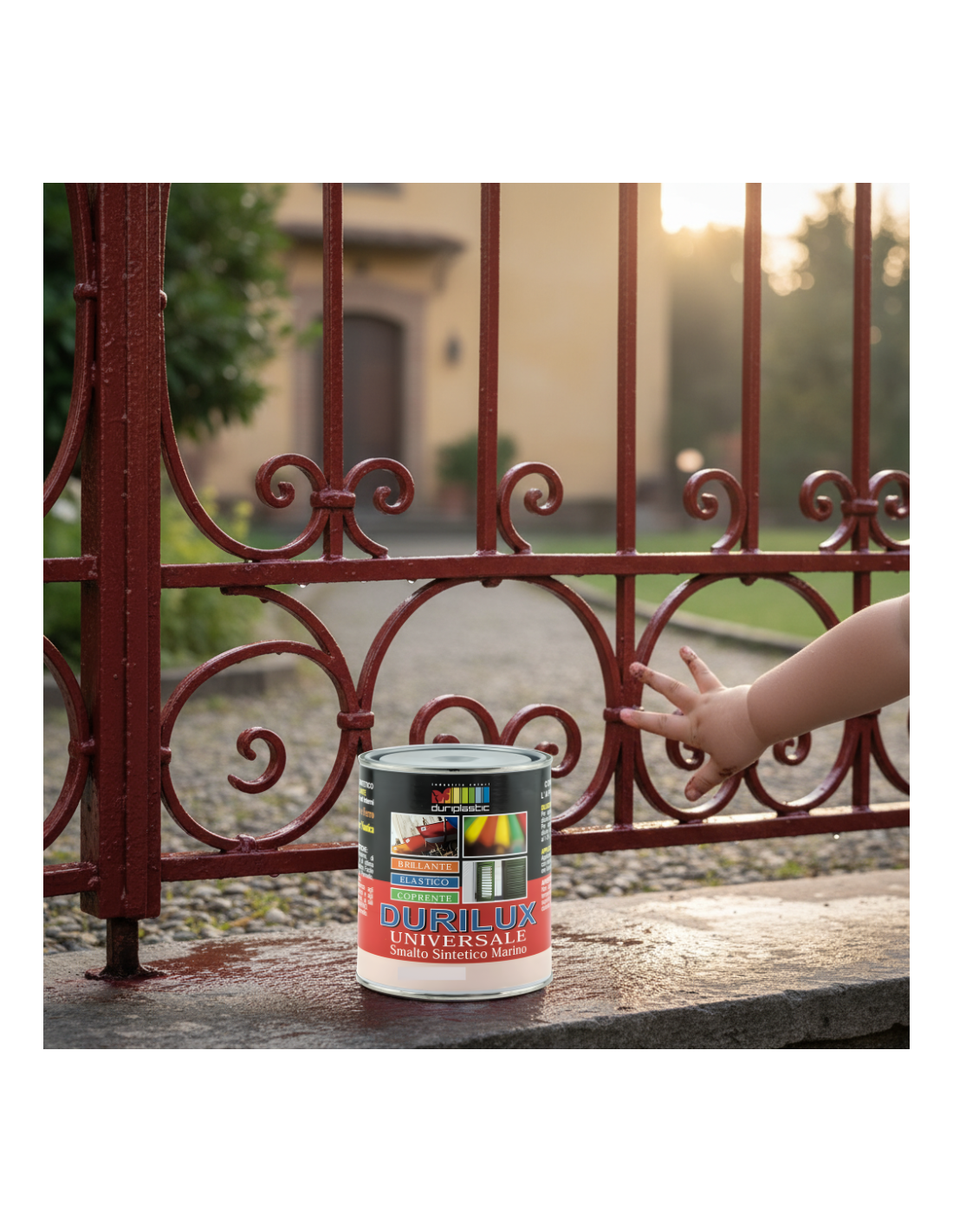 La texture cremosa del prodotto permette una stesura agevole, priva di colature e accumuli, facilitando l’applicazione sia a pennello che a rullo o spruzzo. La versatilità del Durilux consente di adattare la diluizione (10-15%) in funzione del metodo scelto per l’applicazione. L’essiccazione è rapida: dopo 2-3 ore la superficie risulta asciutta al tatto, mentre la completa polimerizzazione avviene entro 24 ore. Per ottenere una protezione ottimale e una resa estetica uniforme, si raccomanda l’applicazione di due mani di prodotto con intervallo minimo di 12 ore tra una mano e l’altra. Il ciclo di preparazione del supporto è fondamentale: per il ferro occorre rimuovere ruggine o vecchie vernici sfogliate e applicare un fondo antiruggine; per il legno è indispensabile carteggiare accuratamente ed eventualmente utilizzare un primer adatto.