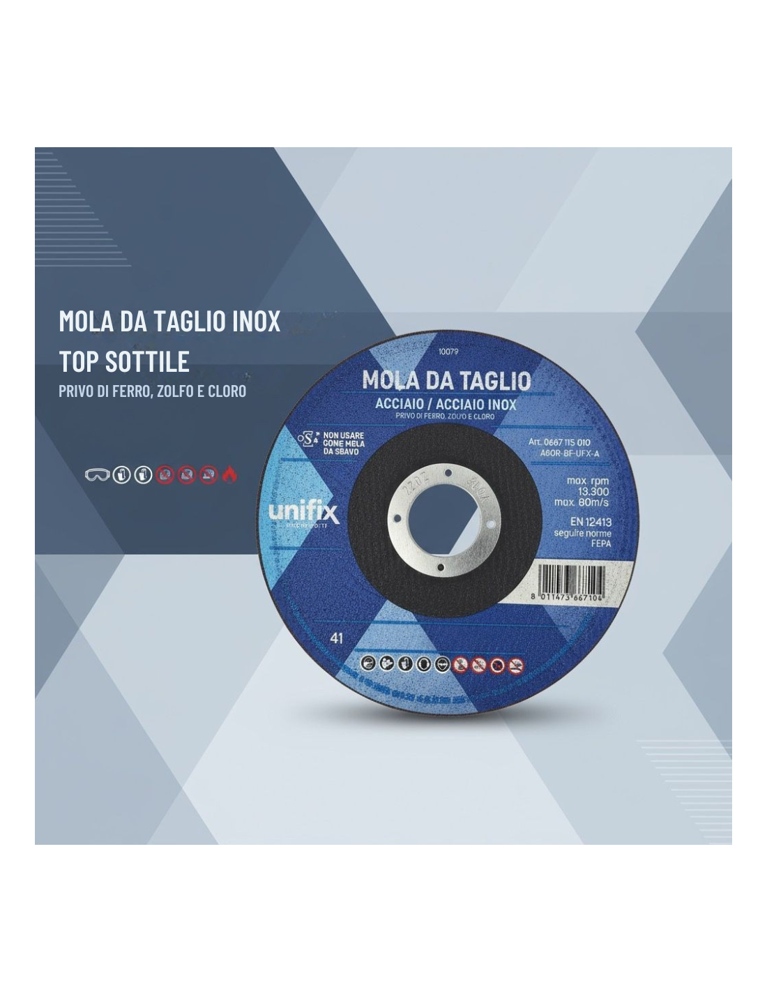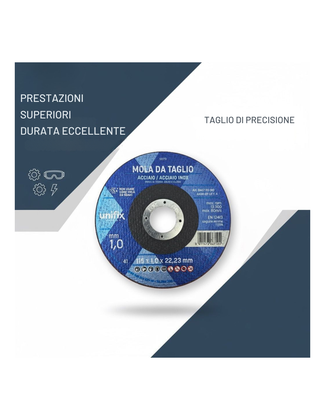 • Cosa garantisce la sicurezza nell’uso? La conformità alle norme EN 12413 e oSa assicura che ogni disco abbia superato rigorosi test meccanici contro urti accidentali. Si raccomanda comunque l’impiego dei dispositivi DPI previsti dalla normativa vigente (occhiali protettivi certificati EN166; guanti anti-taglio).