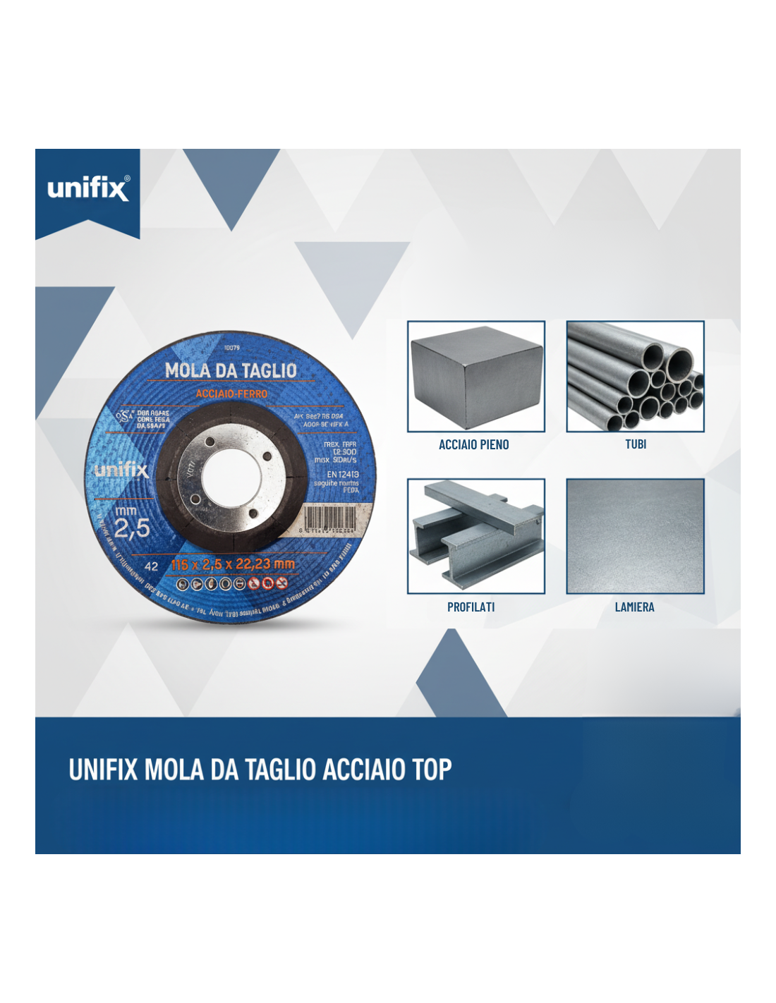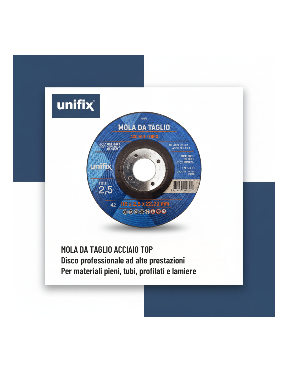 - R: Sì, la mola è idonea anche al taglio del ferro oltre che dell’acciaio. È particolarmente efficace su materiali metallici pieni ma può essere impiegata anche su tubolari e lamiere compatibili con le sue specifiche tecniche.