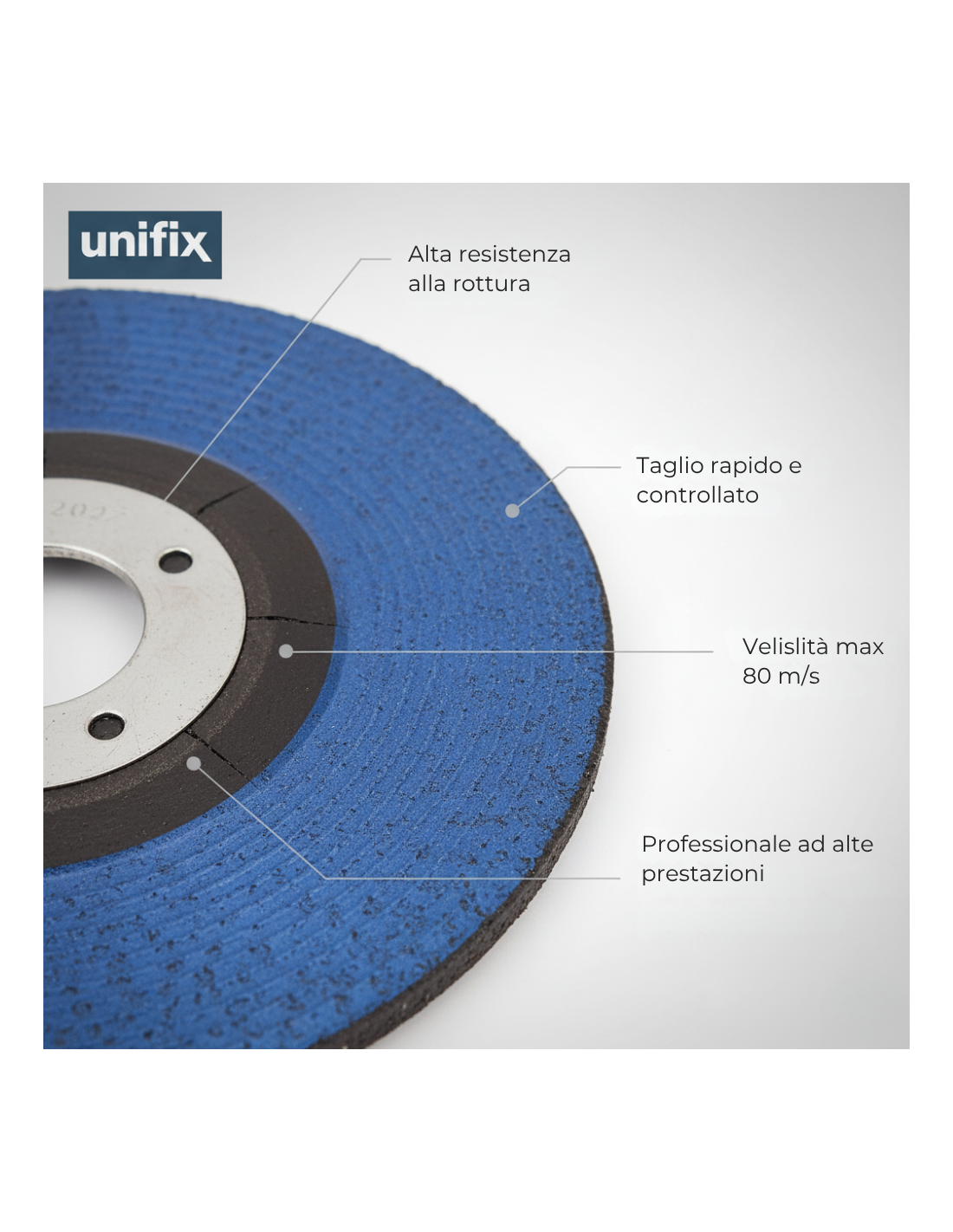 - Lavorazione: utilizzo esclusivo come disco da taglio; evitare la molatura laterale.