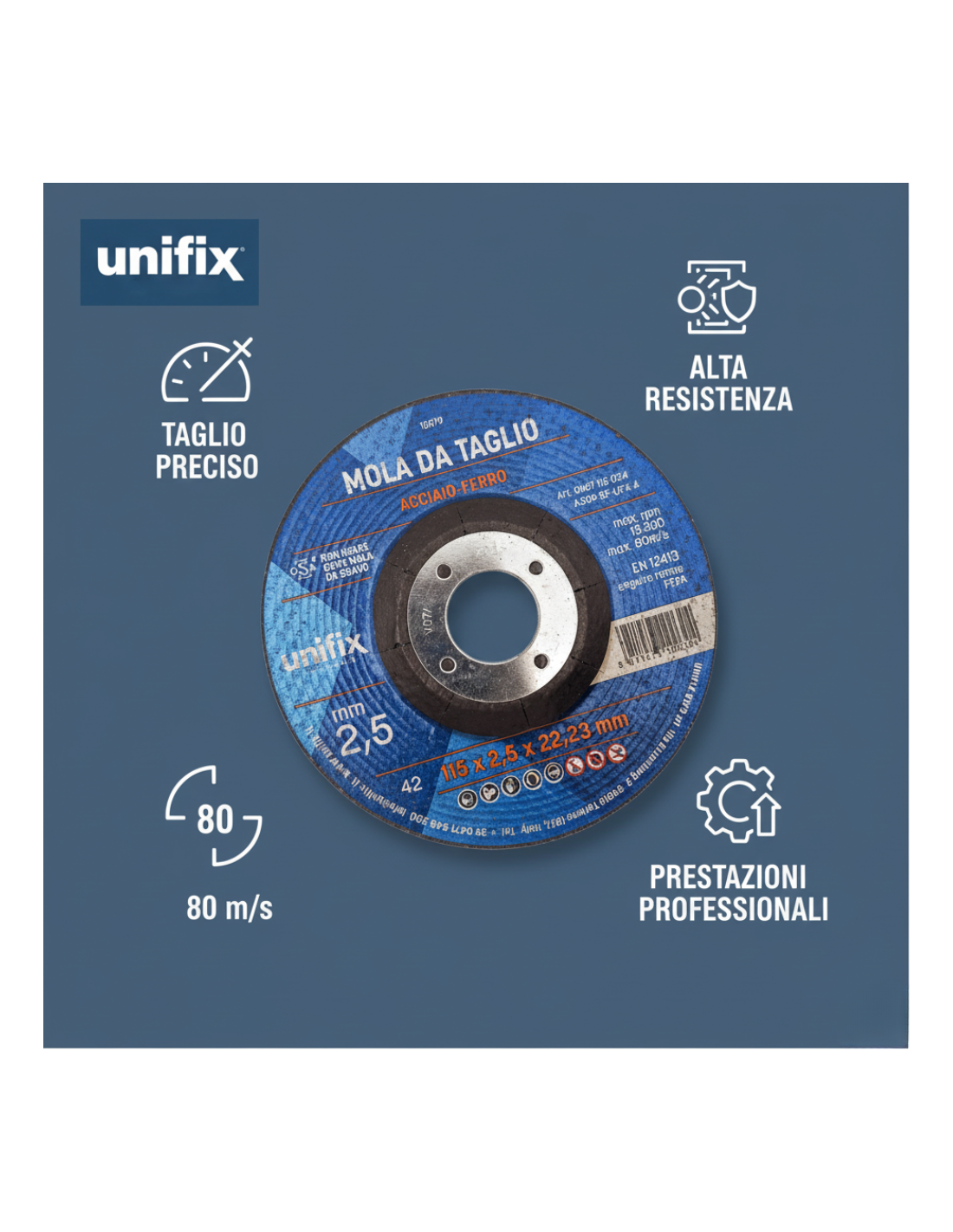 Grazie all’utilizzo di materiali di alta qualità e a processi produttivi controllati, la mola da taglio acciaio top offre una resistenza superiore alla rottura, anche nelle condizioni operative più gravose. La velocità periferica massima di 80 m/s consente un’elevata efficienza nelle lavorazioni, riducendo i tempi di esecuzione e migliorando la produttività complessiva. Il design del centro depresso agevola l’installazione e l’utilizzo su una vasta gamma di attrezzature, assicurando compatibilità e facilità d’impiego.