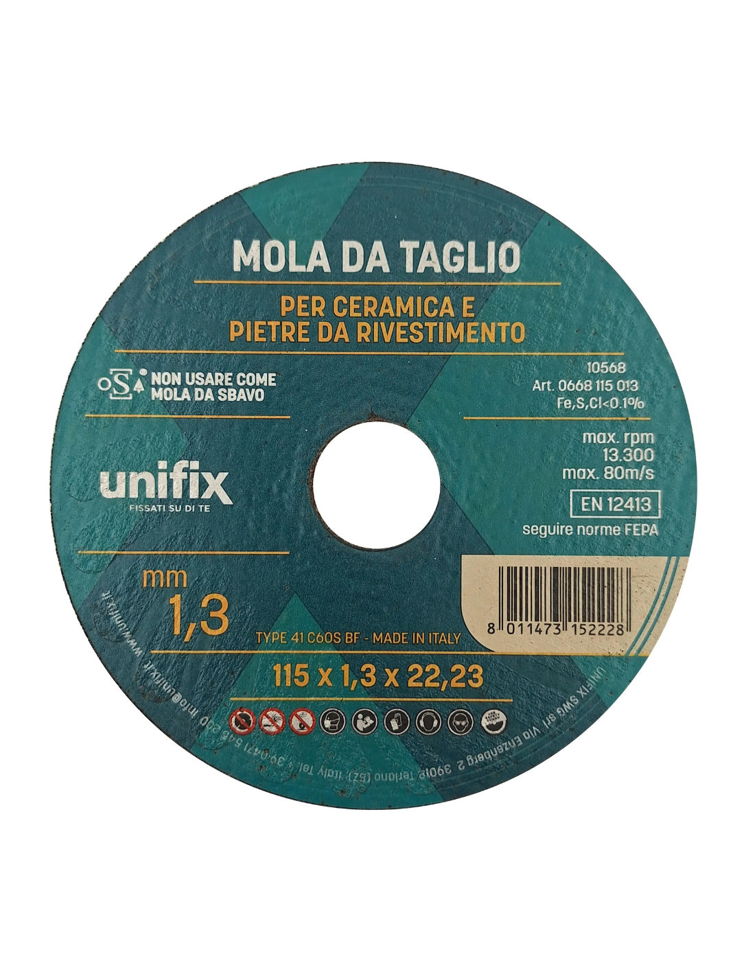 | Uso improprio da evitare | No molatura laterale; verificare integrità prima dell’uso; attenersi alle istruzioni del produttore indicate nel bugiardino allegato alla confezione |