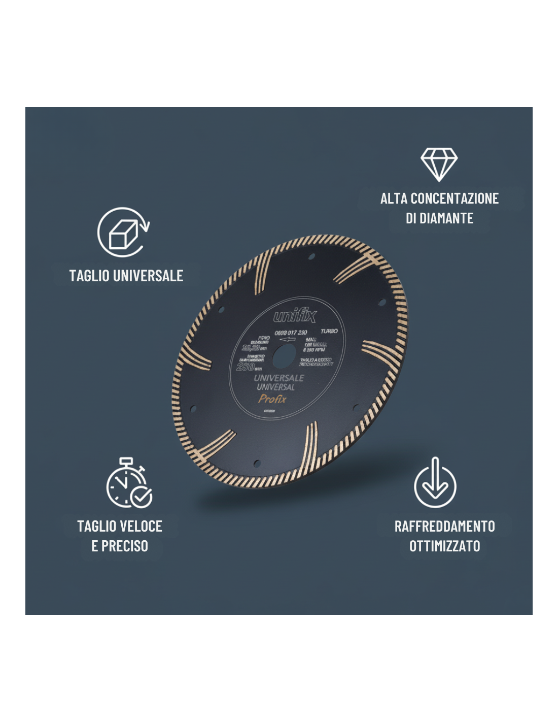 Disco diamantato turbo universale per tagli rapidi e precisi