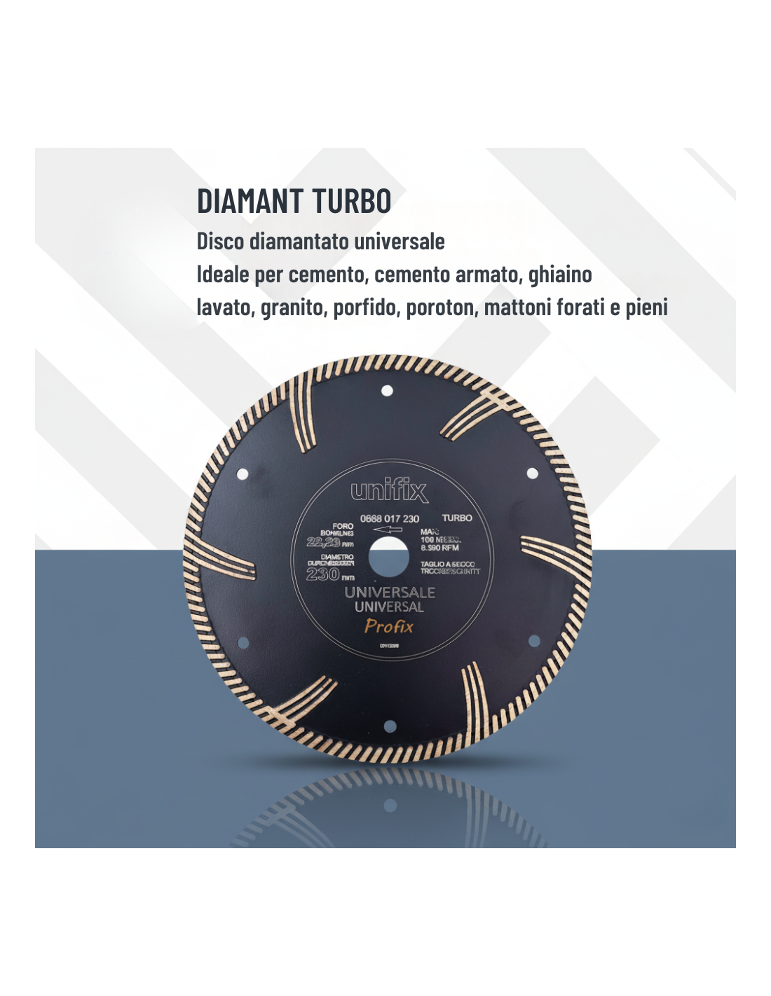Disco diamantato turbo universale per tagli professionali su materiali edili