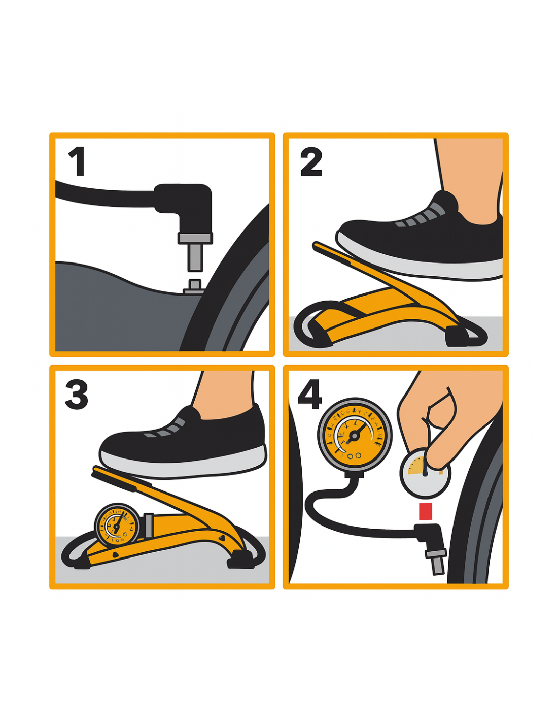 - USO: utilizzo semplice a pedale: basta collegare alla valvola, pompare fino pressione desiderata, ideale per auto, bici, moto