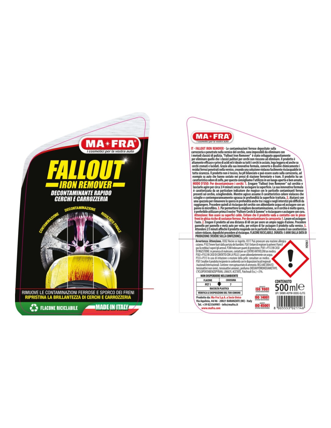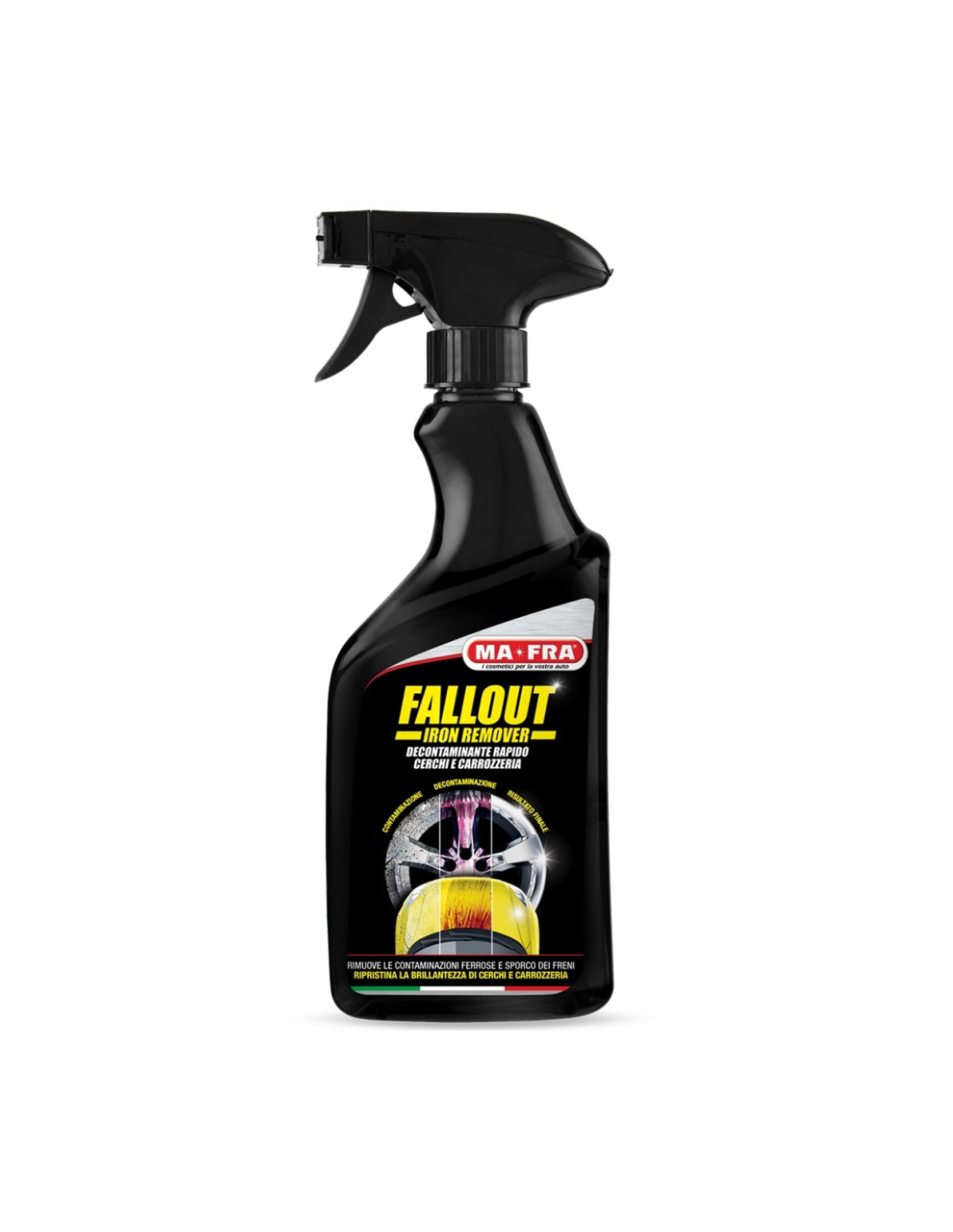 - Mantenimento della brillantezza: utilizzato periodicamente, Fallout Iron Remover preserva lucentezza e integrità dei cerchi e della carrozzeria, riducendo l’accumulo di residui metallici.