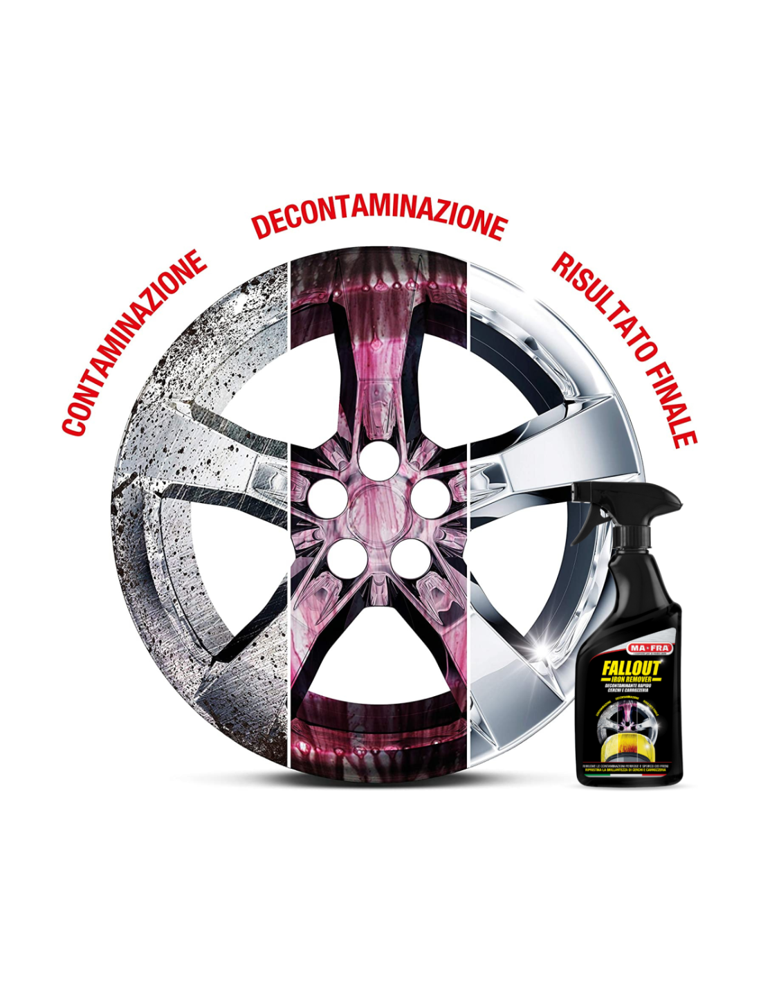 - DECONTAMINANTE rimuove efficacemente particelle ferrose da cerchi e vernice