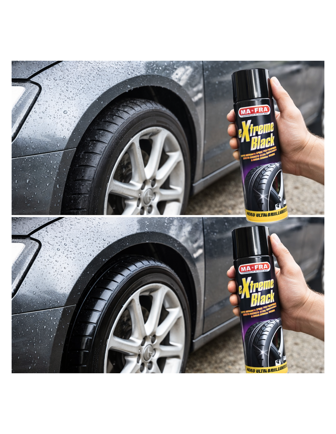 La facilità d’uso è uno dei punti di forza del prodotto: l’applicazione spray permette una distribuzione uniforme sulla superficie, anche negli spazi più difficili da raggiungere come i fianchi degli pneumatici ribassati o le scanalature profonde. Il prodotto agisce rapidamente senza lasciare residui appiccicosi o segni sui cerchi, che possono essere facilmente rimossi con un panno asciutto qualora vi sia un contatto accidentale.