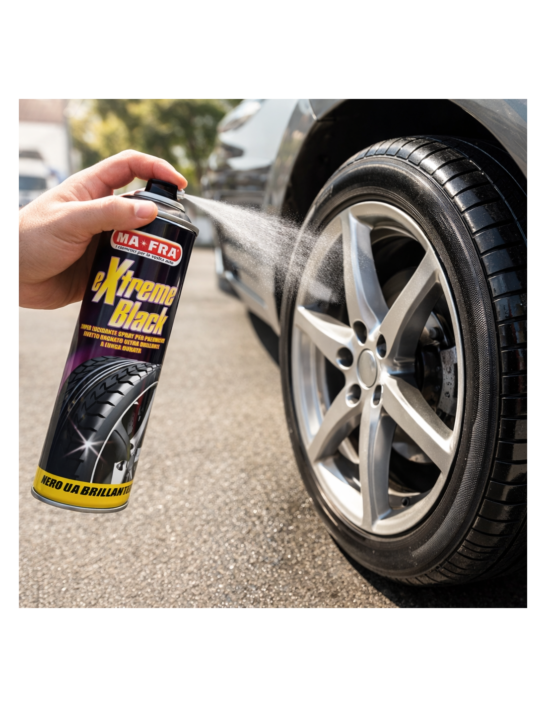 - Nebulizzare direttamente sulla gomma per una finitura lucida intensa.