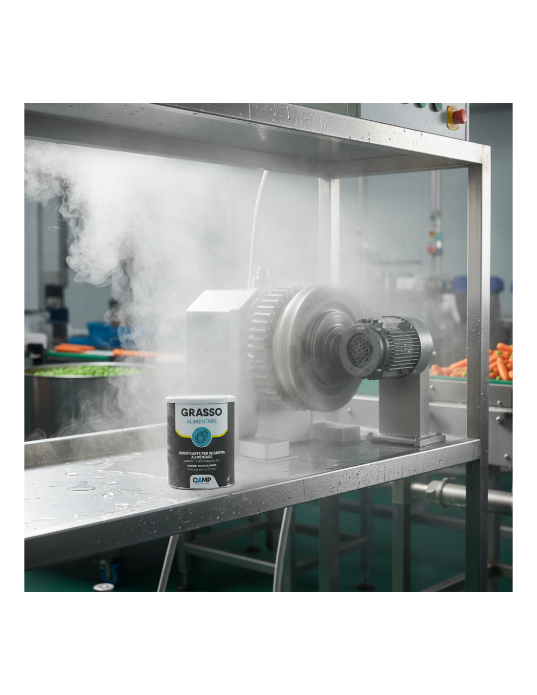 Dal punto di vista termico, il prodotto mantiene le proprie caratteristiche anche in condizioni estreme: è infusibile e stabile da -35 °C fino a +250 °C, risultando adatto tanto all’impiego su linee refrigerate quanto su componenti soggetti a surriscaldamento o cicli termici ripetuti. La resistenza al carico e la capacità di mantenere il film lubrificante anche in presenza di vapore o acqua rendono il grasso Camp ideale per tutte le situazioni in cui la continuità produttiva è un requisito imprescindibile.