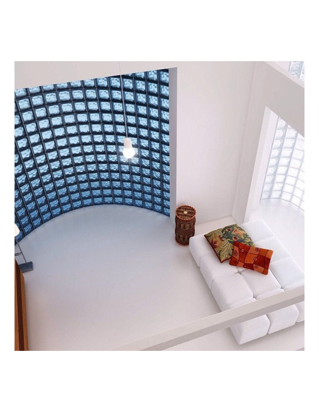 Il vetromattone blu grazie al suo design ondulato, crea affascinanti giochi di luce e ombra, garantendo privacy senza sacrificare la luminosità naturale