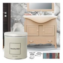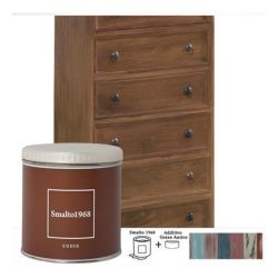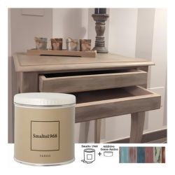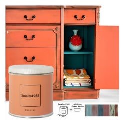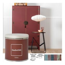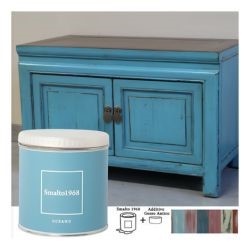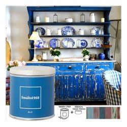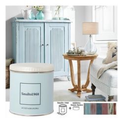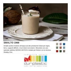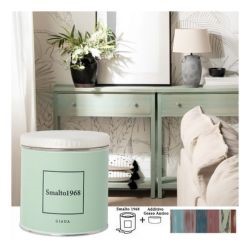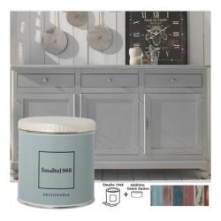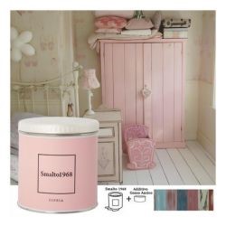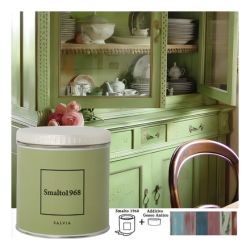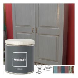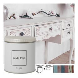 Lo smalto ad acqua con additivo gesso antico permette di rinnovare vecchi mobili e accessori in legno creando l'effetto vissuto dello stile Shabby Chic. Lo Smalto1968 è disponibile in 20 colori, ciascuno dei quali è rappresentato sul proprio barattolo.