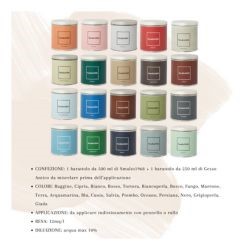 CONFEZIONE: sono inclusi 1 Smalto1968 da 500ml + 1 Additivo Gesso Antico da 250ml da miscelare prima dell’applicazione secondo le indicazioni fornite.