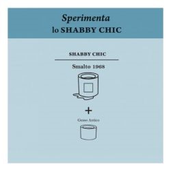 TECNICA SHABBY CHIC: miscelando Smalto 1968 con l'Additivo Gesso Antico, è possibile ottenere una finitura in stile Shabby Chic. Dopo aver applicato una base di smalto, si aggiunge l'additivo per ottenere l'effetto desiderato. Per un risultato ottimale, è consigliato l'uso di una cera protettiva nelle zone di maggiore usura.